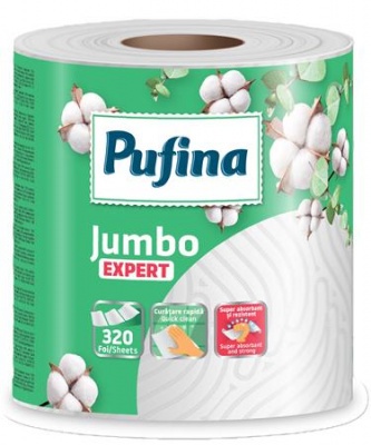Háztartási papírtörlő, 2 rétegű, 320 lap, 1 tekercses, PUFINA "Expert"