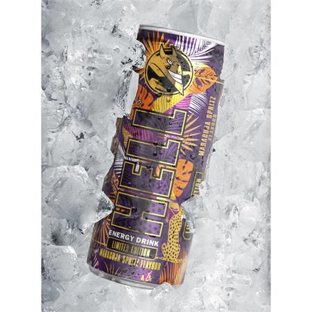 - őszibarack-, maracuja- és tuttifruttiízű, koffeintartalmú, szénsavas energiaital hozzáadott vitaminokkal